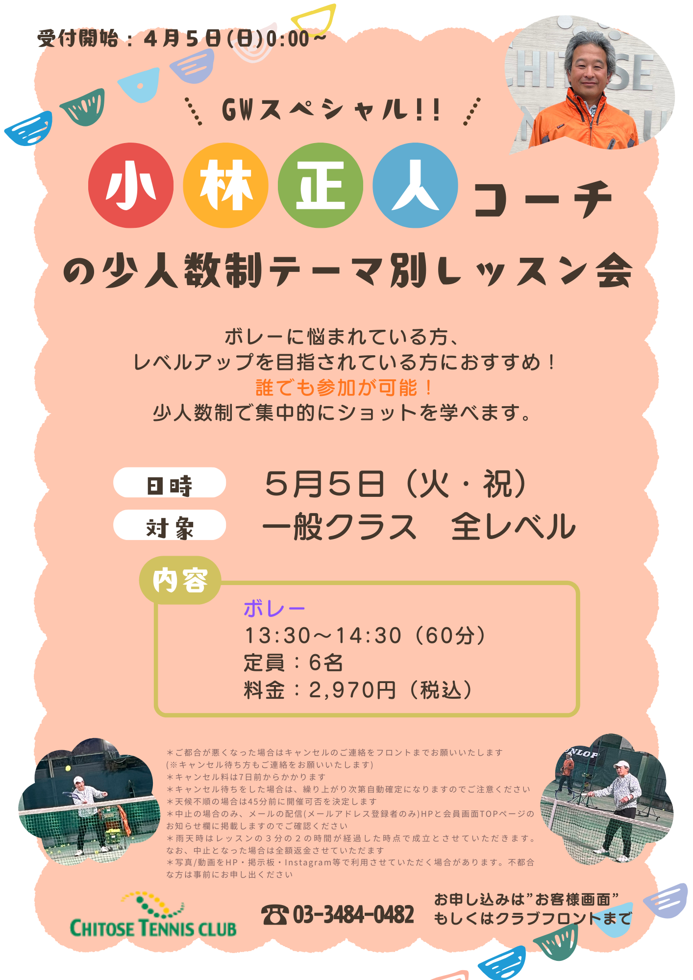 ゴールデンウィークに小林正人コーチによる少人数制テーマ別レッスン会を開催します。