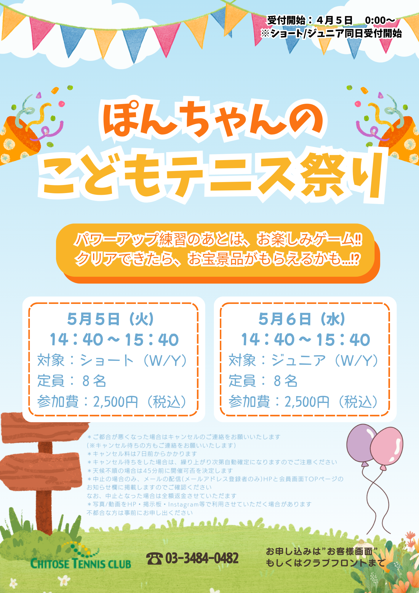 GWに「ぽんちゃんのこどもテニス祭り」を開催いたします!