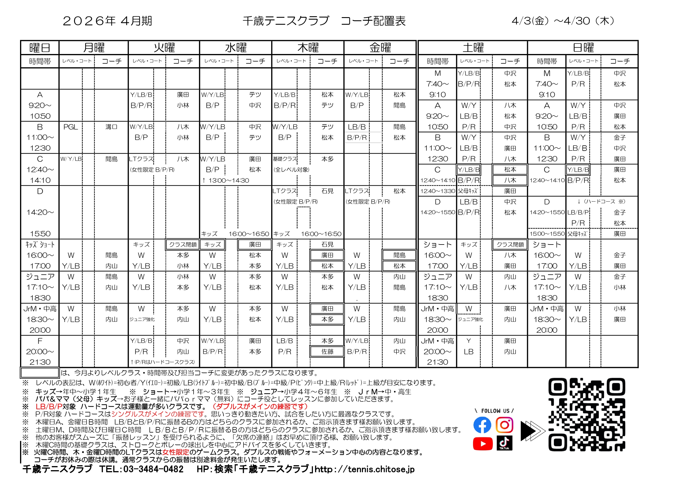 2026年4月期千歳コーチシフト